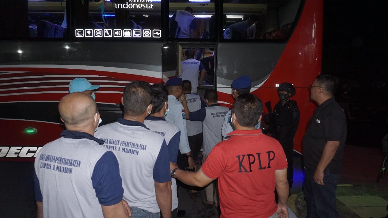Proses pemindahan dilakukan sejak Sabtu (27/11). Sebelum ke Nusakambangan, para WBP dikumpulkan di Lapas I Madiun sebagai tempat transit. Para WBP dikawal Tim Divisi Pemasyarakatan Kanwil Kemenkumham Jatim, 5 petugas Lapas I Madiun dan 1 peleton pasukan Batalion C Sat Brimob Polda Jatim Pelopor Madiun.