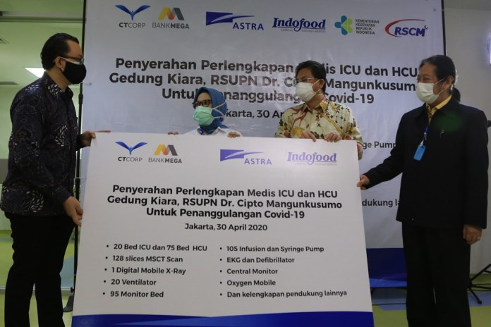 Jakarta, NEODEMOKRASI.COM – Astra menyerahkan perlengkapan medis fasilitas intensive care unit (ICU) dan isolasi ketat atau high care unit (HCU) kepada Rumah Sakit Umum Pusat (RSUP) Nasional Cipto Mangunkusumo Jakarta, Kamis (30/4). Bantuan ini untuk mempercepat penanganan pasien positif Covid-19.