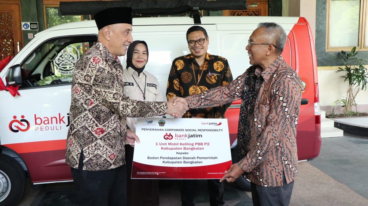 Bangkalan.NEODEMOKRASI.COM. PT Bank Pembangunan Daerah Jawa Timur Tbk ( Bank Jatim) Salurkan Bantuan CSR ke Dua Pemkab Sekaligus terus mendukung berbagai program pemerintah daerah demi kemajuan bersama. Hal tersebut diwujudkan dengan memberikan bantuan Corporate Social Responsibility (CSR) kepada Pemerintah Kabupaten Bangkalan berupa 1 unit mobil Keliling Pajak Bumi dan Bangunan Perkotaan Pedesaan (PBB P2). Bertempat di Kantor Bupati Kabupaten Bangkalan, penyerahan dilakukan secara simbolis oleh Direktur Manajemen Risiko Bank Jatim Salurkan Bantuan CSR ke Dua Pemkab Sekaligus Eko Susetyono kepada Pj. Bupati Bangkalan Arief M Edie pada hari Kamis (22/2).
