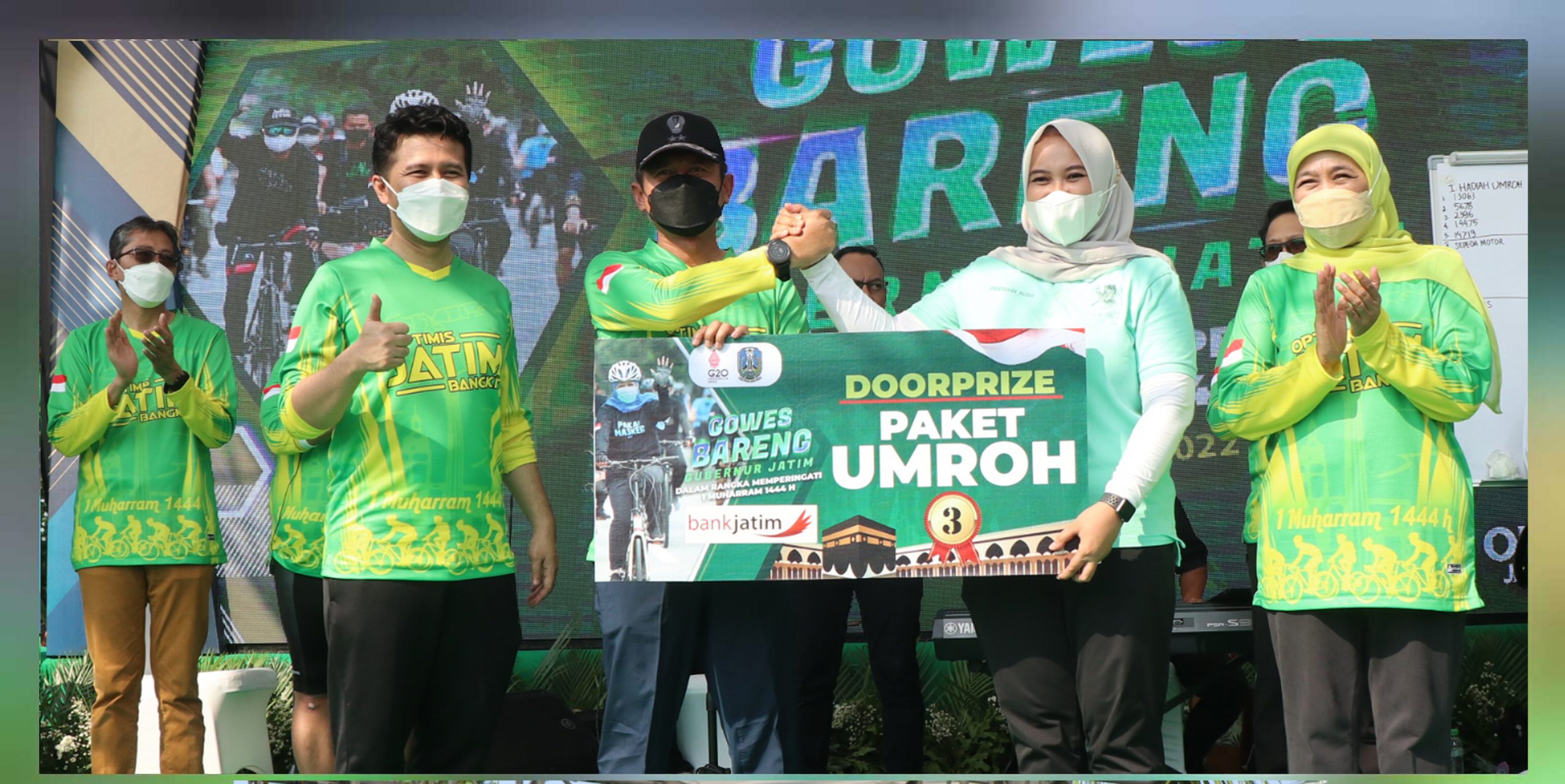 Bank Jatim berpartisipasi dalam bentuk Hadiah Utama 3 paket Umroh dari total 5 paket Umroh bagi para pegowes yang beruntung dalam kegiatan tersebut.