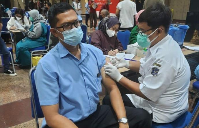 Salah satu pengemudi Bluebird di Surabaya menjalani vaksinasi.vaka