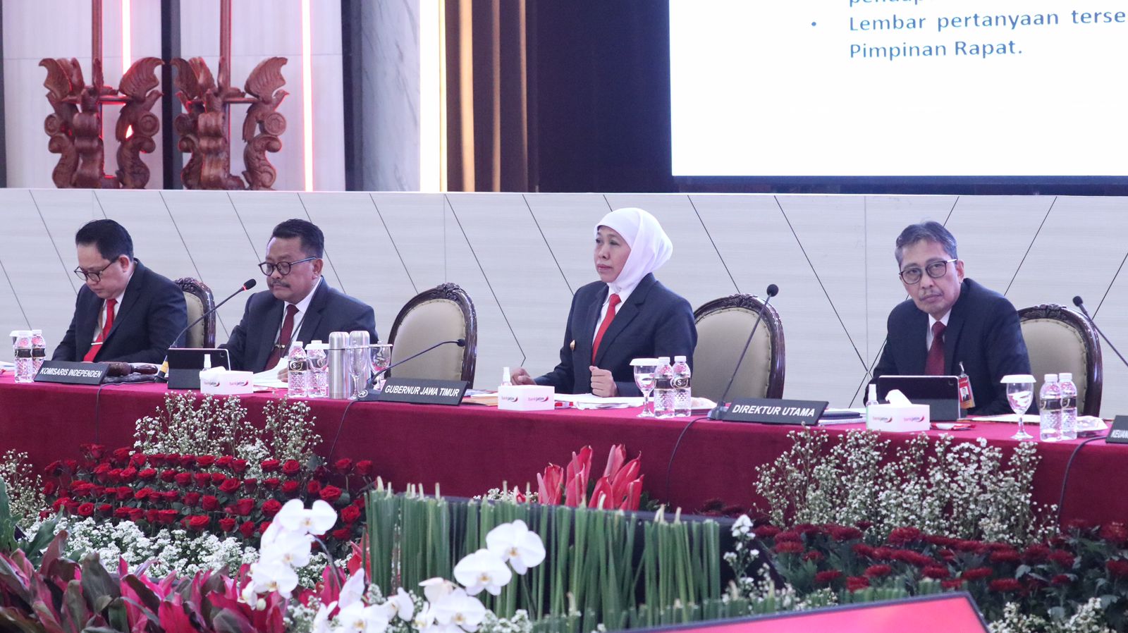 Surabaya. NEODEMOKRASI. COM. PT Bank Pembangunan Daerah Jawa Timur Tbk (Bank Jatim ) telah melaksanakan Rapat Umum Pemegang Saham (RUPS) Tahunan Tahun Buku 2023. Acara tersebut dihelat di Ruang Bromo, Bank Jatim Kantor Pusat Surabaya pada hari Rabu (7/2). Hadir langsung dalam RUPS tersebut Gubernur Jawa Timur Khofifah Indar Parawansa yang mewakili Pemerintah Provinsi Jawa Timur sebagai pemegang saham pengendali beserta seluruh dewan komisaris serta direksi Bank Jatim.