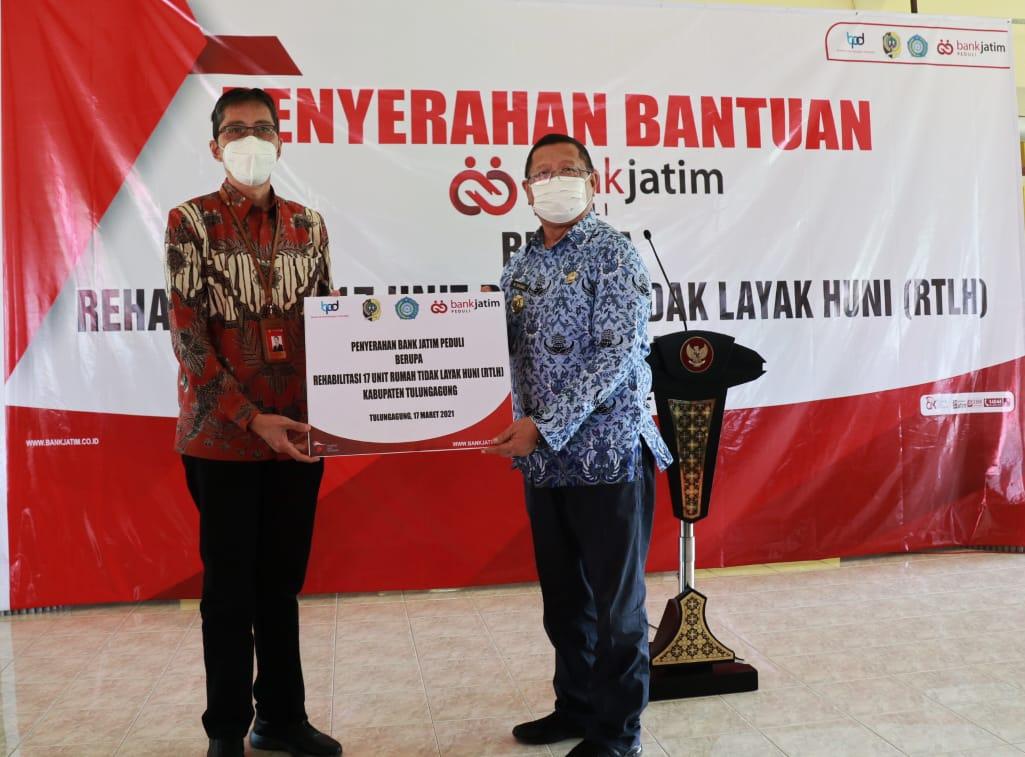 Bupati Tulungagung Maryoto mengucapkan terima kasih yang sebesar-besarnya kepada Bank Jatim dan seluruh pihak yang telah berkontribusi terhadap kegiatan rehabilitasi RTLH tersebut.