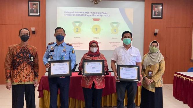 Penghargaan tersebut dinilai berdasarkan aspek nilai Indeks Kinerja Pelaksanaan Anggaran, laporan pertanggungjawaban, implementasi digital payment, dan aspek lainnya. “Ini tentunya capaian yang baik. Membuktikan bahwa pengelolaan anggaran di jajaran kami sudah on the track,” puji Kakanwil Kemenkum HAM Jatim Zaeroji.