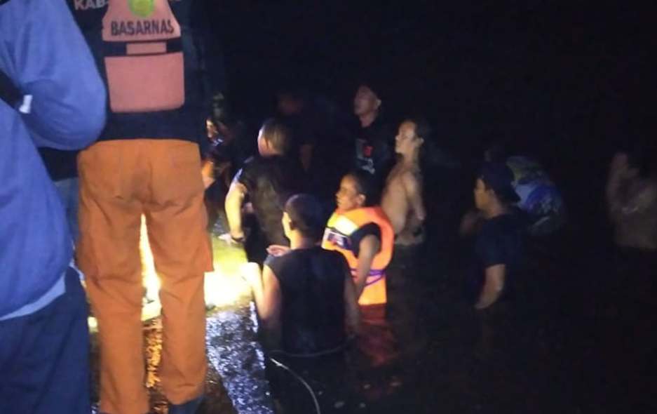 Aparat gabungan dari BPBD Sidoarjo dan Tim SAR yang datang sekitar pukul 18.00 WIB turun langsung untuk mencari keberadaan kedua pria yang hanyut terbawa arus sungai.
