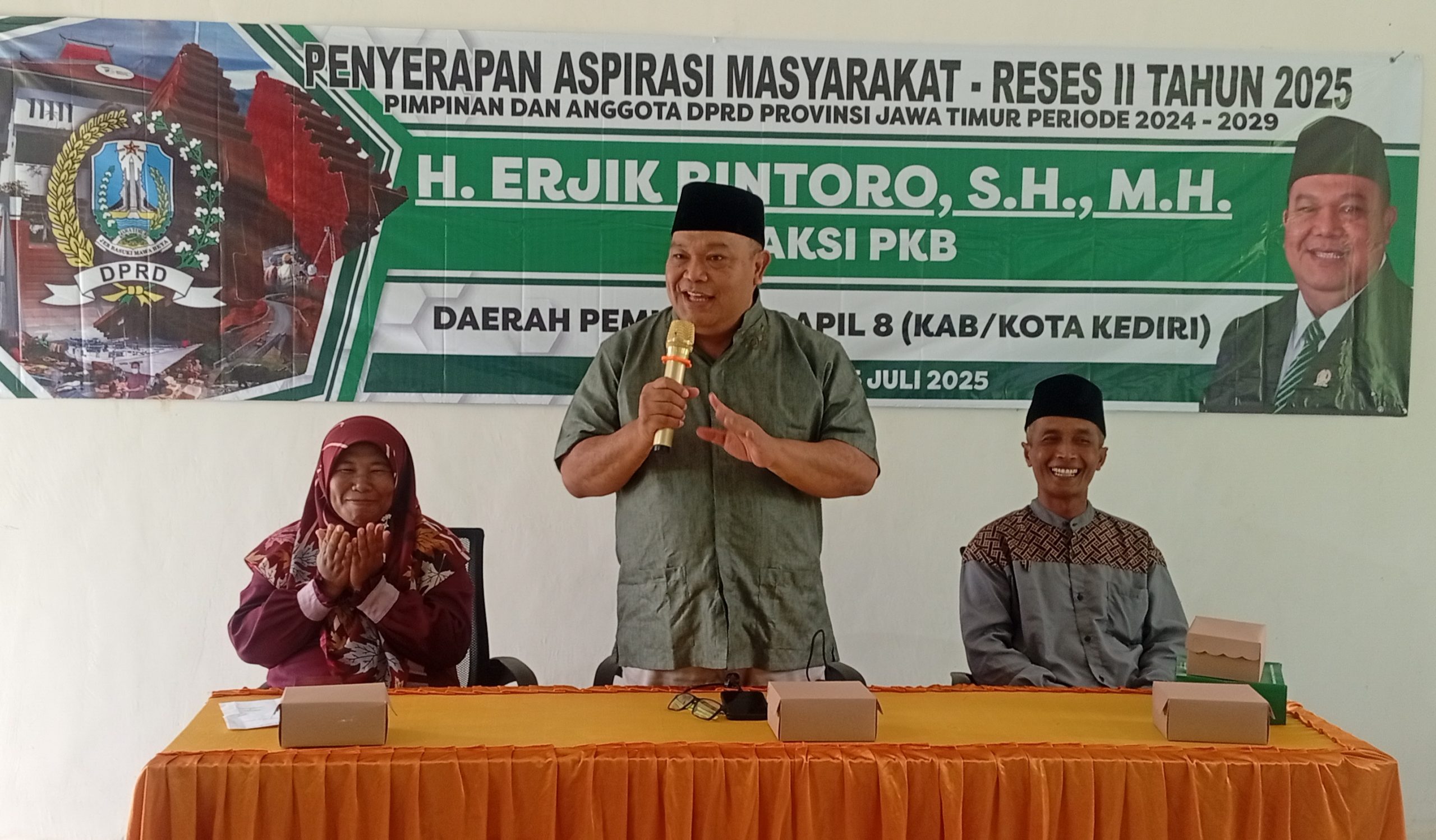 Kediri.NEODEMOKRASI.COM. Reses kedua yang digelar politisi PKB  yang juga  anggota Komisi B DPRD Provinsi Jatim, H  Erjik Bintoro SH MH, digelar  di Aula  Hasyim Asyari yang berlokasi di jalan Sidorawuh RT 2 RW 1, Dusun Sidorawuh, Kayen Kidul, Kediri. Dihadiri sekitar 150  warga yang berlatar belakang petani, pelaku UMKM,  pedagang, guru, tokoh masyarakat dan tokoh agama dari wilayah Sidorawuh dan sekitarnya.