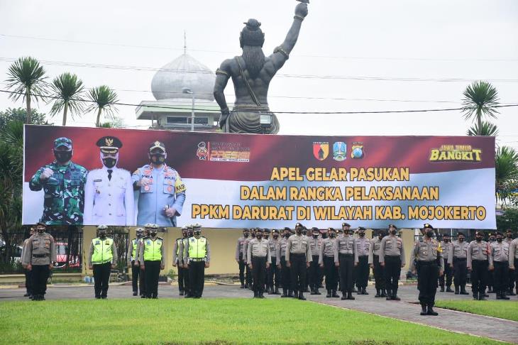 Kapolres Mojokerto dalam keterangan menjelaskan bahwa satuannya akan mengecek dan memantau titik-titik lokasi yang sudah ditentukan dalam perintah. Mulai tempat hiburan, wisata, rumah makan dan kegiatan yang menimbulkan kerumunan. Tindakan penyekatan wilayah juga dilakukan di tiga titik wilayah antara lain Trawas, Ngoro, dan Trowulan demi menekan mobilitas warga masyarakat.