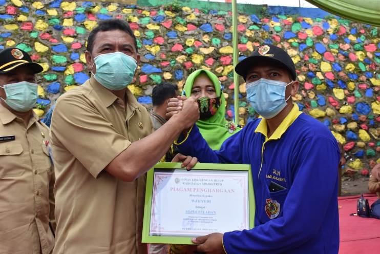Bupati Pungkasiadi memberikan penghargaan kepada sopir teladan, para pemenang Lomba Desa Berseri pada Peringatan Hari Bumi.