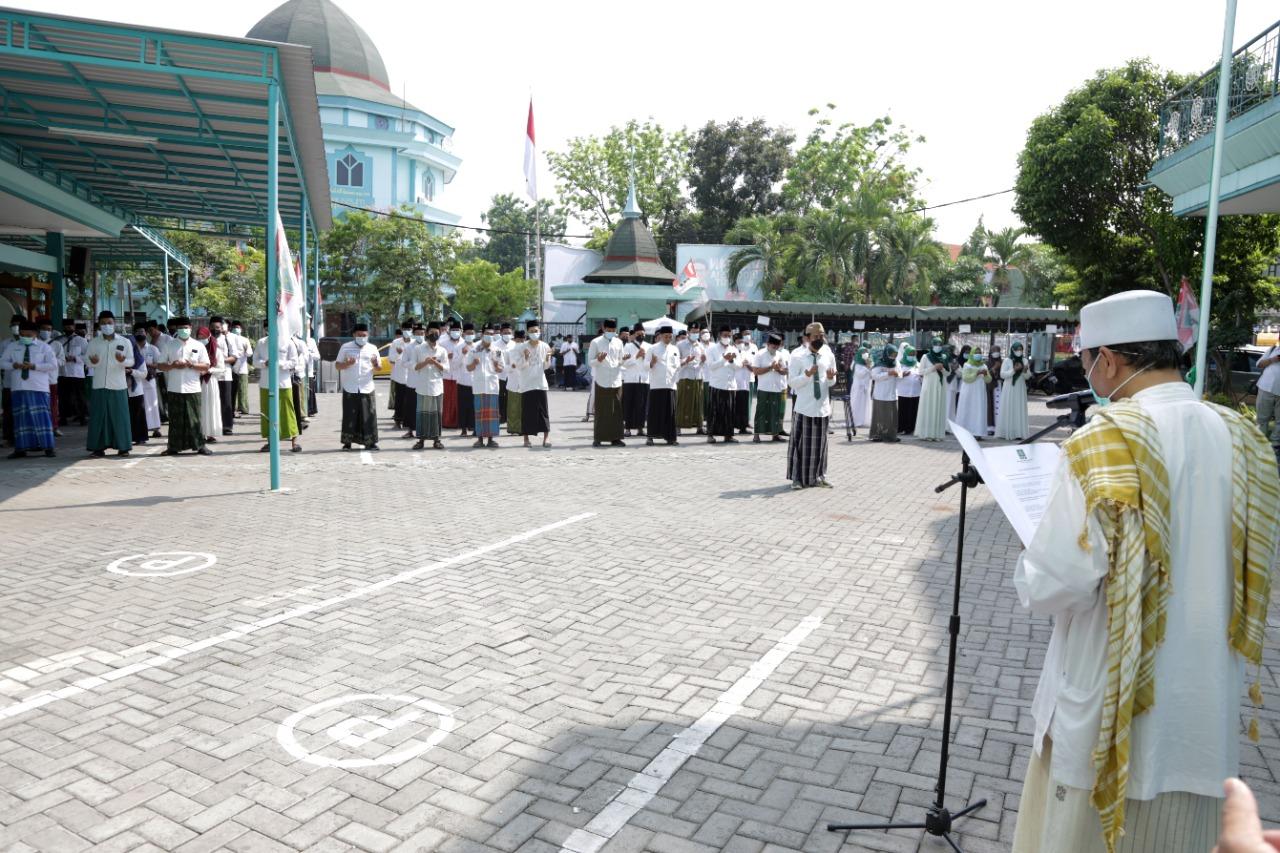 Surabaya.NEODEMOKRASI.COM. Peringatan Hari Santri Nasional (HSN) 2021 yang masih di masa pandemi, pesantren diharapkan mampu membawa pesan bahwa pesantren memiliki kontribusi yang besar dalam upaya penanganan pandemi. Jika peringatan HSN tahun lalu bertema Santri Sehat Indonesia Kuat. Maka pada tahun ini, Kemenag RI mengangkat tema Santri Siaga Jiwa dan Raga yang memiliki makna bahwa santri di seluruh Indonesia harus selalu siap siaga untuk menyerahkan jiwa dan raga guna membela tanah air, mempertahankan persatuan Indonesia, dan mewujudkan perdamaian dunia.