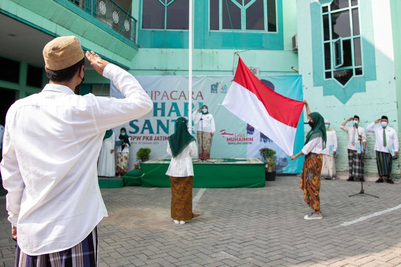 Mendukung peringatan HSN 2021, DPW PKB Jawa Timur menggelar upacara memperingati Hari Santri Nasional di halaman kantor DPW PKB Jatim, Gedung Astranawa, kawasan Gayungsari Surabaya, Jumat (22/10). Diikuti ratusan peserta upacara yang terdiri dari para santri dan pelajar dari beberapa pondok pesantren di kota Surabaya. Bertindak sebagai inspektur upacara. Hj Anik Maslacha, sekretaris DPW PKB Jatim yang juga menjabat Wakil Ketua DPRD Jatim. Sepanjang pelaksanaan upaya yang berdurasi berlangsung hikmat.