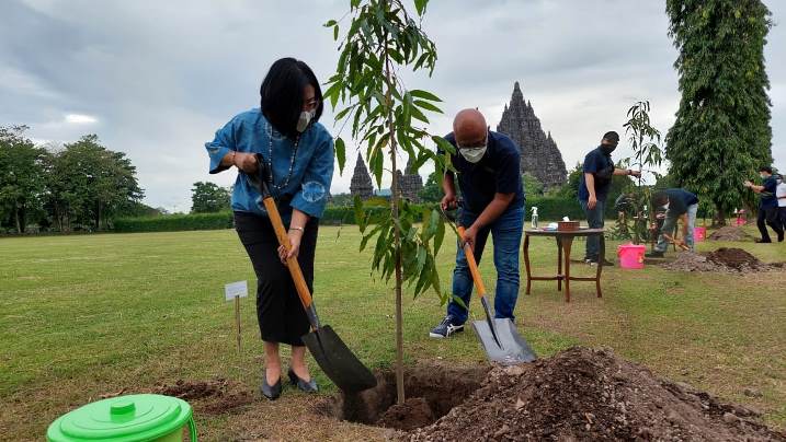 Penanaman pohon oleh Direktur Utama KBI Fajar Wibhiyadi dan Direktur Pemasaran dan Pelayanan Taman Wisata Candi Prambanan Hety Herwati.
