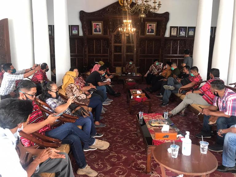 “Kita nggak bisa cegah orang masuk ke wilayah kita, apalagi ini libur panjang. Pasti banyak yang datang ke tempat wisata. Yang dapat kita lakukan pengetatan prokes disertai regulasi,” ,” tegas Pjs Bupati Mojokerto Himawan Estu Bagijo, saat bersilaturahmi dengan awak media, Selasa (27/10) siang di peringgitan rumah dinas.