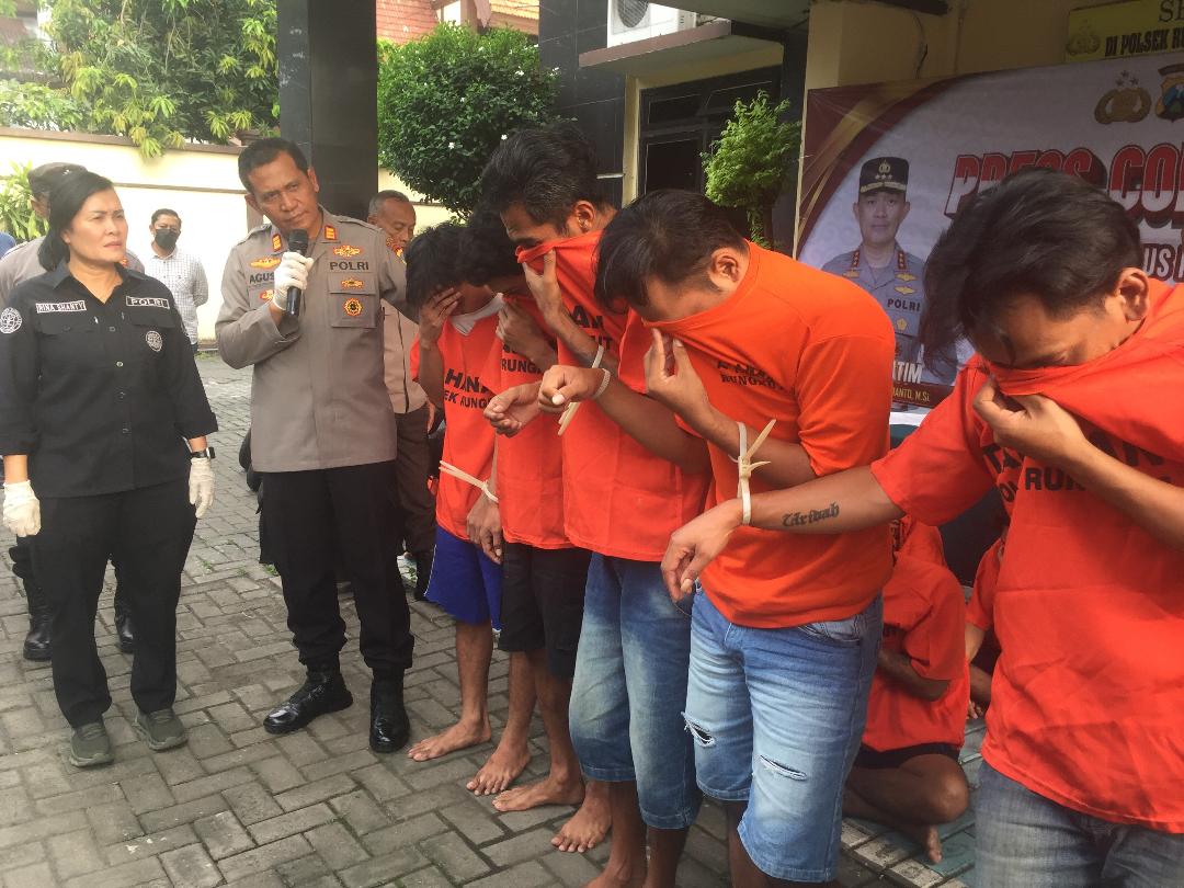 Lima tersangka yang ditangkap Polsek Rungkut antara lain Jimblak (34) warga Petemon Sidomulyo, T (31) warga Weruh Nganjuk, NP (37) warga Tegalsari Mojokerto, RCP (24) warga Tirto Agung Surabaya, serta S (24) warga Gamongan Jombang.