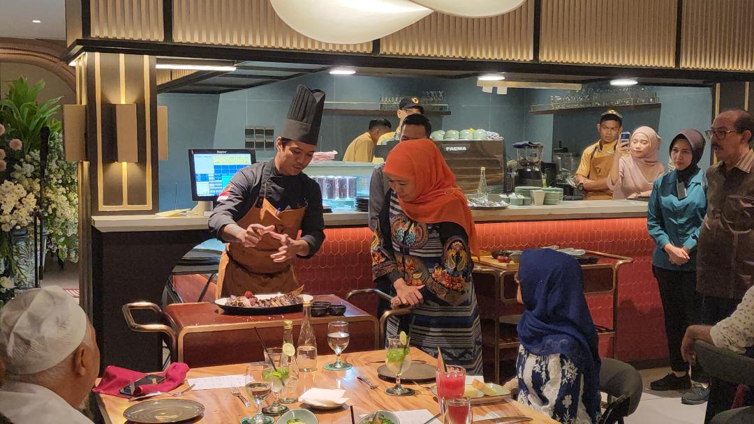 Khofifah hadir dalam peresmian Me’nate Steak & Seafood.