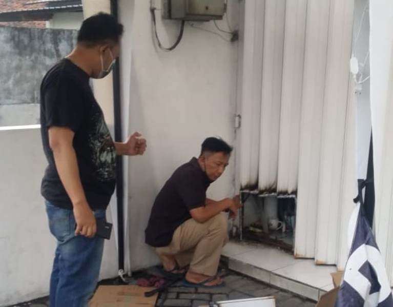 Saksi tersebut kemudian menghubungi pekerja bagian lapangan untuk melakukan pengecekan. Nah, setelah dicek, pekerja lapangan tersebut melihat pintu Hharmonika minimarket rusak berlubang bekas dilas.