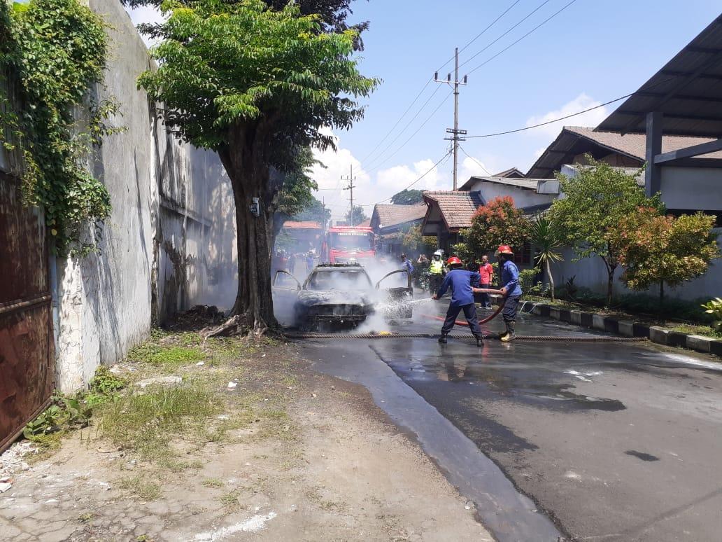 Sidoarjo, NEODEMOKRASI.COM – Sedan Samapta Polda Jatim berjenis Mitsubishi Lancer hangus terbakar. Kebakaran mobil bernopol 14212-X itu diduga karena korsleting listrik.
