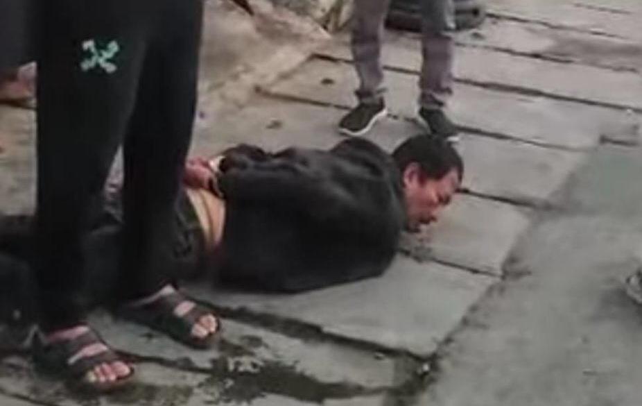 Berdasarkan video yang diunggah akun facebook Ima* Sdr** di salah satu grup Facebook, pelaku tampak babak belur pada bagian wajah setelah dimassa. Video pertama memperlihatkan saat pelaku dibawa oleh anggota polisi dan warga dengan tangan diborgol untuk dimasukkan mobil. Selain itu, anggota polisi juga membawa sajam jenis parang milik pelaku.