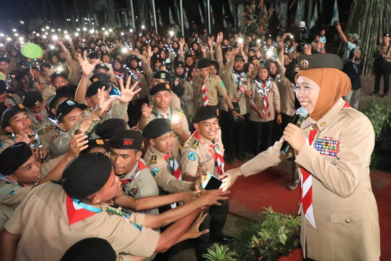 Khofifah Indar Parawansa menyapa generasi muda dari kalangan Pramuka.