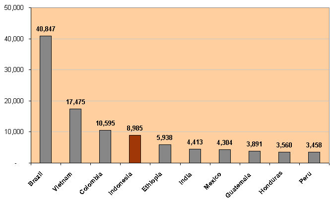 Perlu diketahui bahwa Indonesia merupakan produsen dan pengekspor kopi terbesar keempat dunia setelah Negara brazil, Vietnam dan kolombia untuk komoditi ini. Banyak barang impor yang sering kita banggakan adalah ekspor dari Negara kita sendiri. Dari data diatas menujukkan bahwa Indonesia mampu bersaing dengan Negara di dunia dalam produksi kopi. Dari total produksi, sekitar 67 % kopi di ekspor sedangkan sisanya 33% untuk memenuhi kebutuhan dalam negeri. Strata industri kopi dalam negeri juga sangat beragam, dimulai dari unit usaha berskala home industry hingga berskala multinasional. Produknya mampu memenuhi pasar dalam negeri dan luar negeri. Hal ini juga di dukung karena kondisi alam untuk perkebunan kopi di Indonesia sangat kondusif.