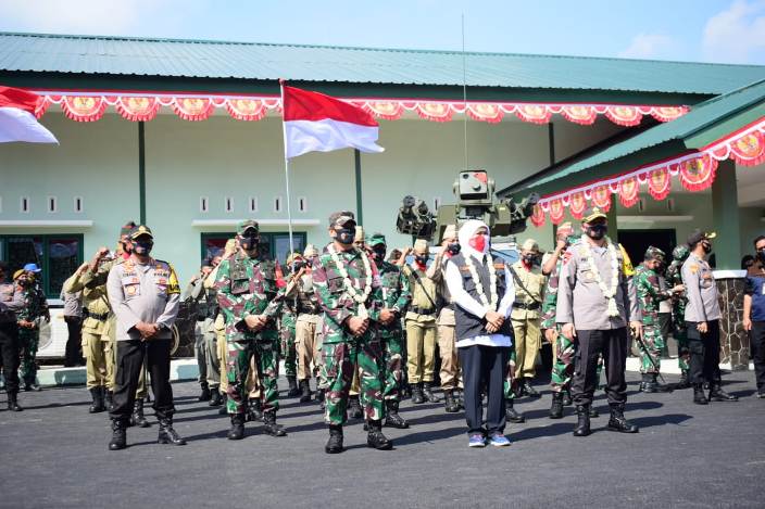 Gubernur Jawa Timur Khofifah Indar Parawansa didampingi Pangdam V Brawijaya Mayjend TNI Widodo Iryansyah, dan Kapolda Jawa Timur Irjen Pol Mohammad Fadil Imran mencanangkan peran TNI-Polri dalam penanganan Covid-19.