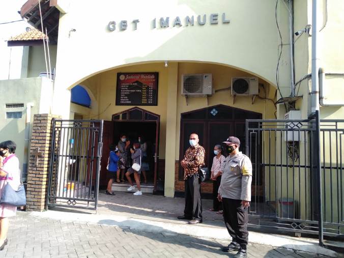 Disamping melakukan pengamanan, petuga kepolisian juga memberikan imbauan dan sosialisasi terkait penerapan protokol kesehatan. Petugas juga mengimbau kepada jemaat agar tidak berpergian keluar kota sementara, mengingat adanya larangan mudik dari pemerintah.(dan)