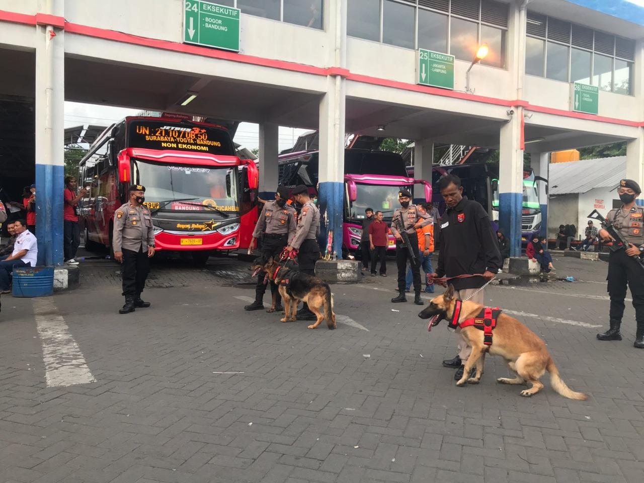 Anjing pelacak beroperasi di Terminal Purabaya menjelang Nataru.