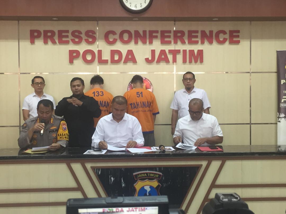 “Penangkapan dilakukan kepada tiga tersangka yang satunya dibawah umur dilakukan pada Sabtu (25/5) di rumah tersangka masing masing,” ungkap Dirreskrimum Poda Jatim Kombes Pol Totok Suharyanto didampingi Kasubdit III Jatanras Polda Jatim AKBP Abaridil Jumhur, Senin (27/5).