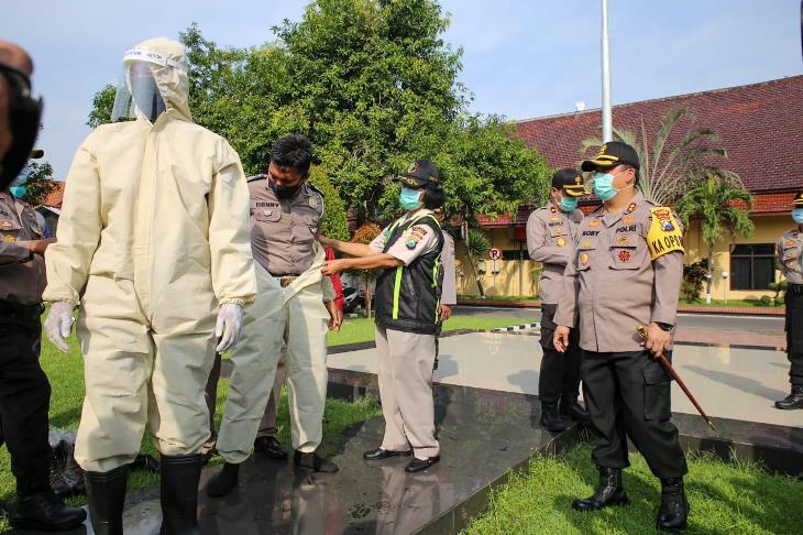Upaya pencegahan yang dilakukan Polres Jombang, yakni dibuktikan dengan membekali alat pelindung diri (APD) kepada anggotanya. Pemberian tersebut diserahkan langsung oleh kapolres saat apel pagi yang digelar di lapangan mapolres setempat, Rabu (15/4).