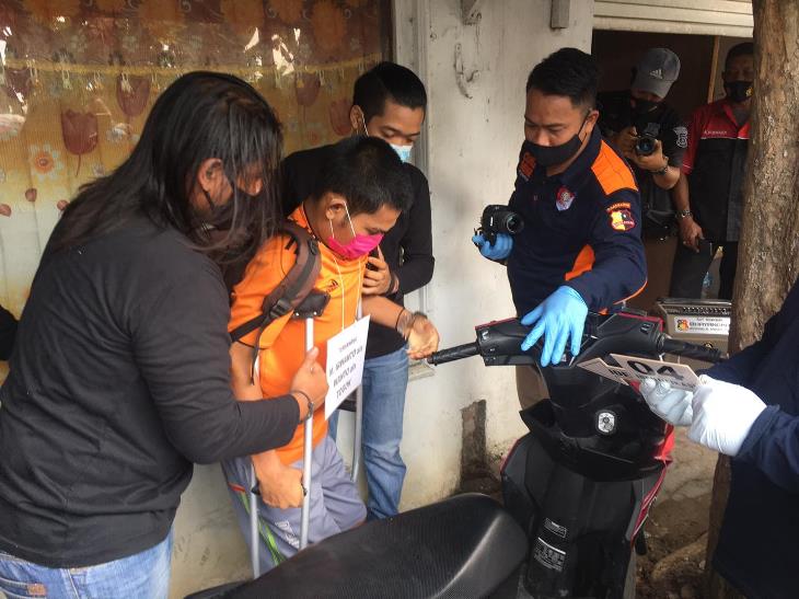 Pelaku yang dihadirkan dalam rekonstruksi oleh Polresta Mojokerto.