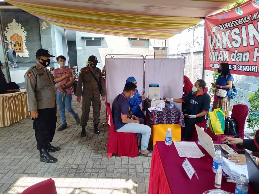 Sidoarjo, NEODEMOKRASI.COM – Polsek Krembung memberikan pengamanan kegiatan vaksinasi Covid-19 oleh Dinas Kesehatan Sidoarjo bagi warga umat Hindu. Kegiatan ini digelar di Pura Penataran Agung Margo Wening Balonggarut, Kecamatan Krembung, Sabtu (12/6).