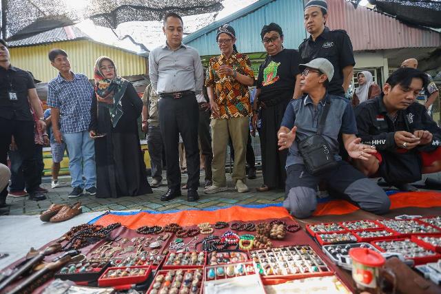 Wali Kota Surabaya Eri Cahyadi meninjau pusat pedagang batu permata di Pasar Kayoon.