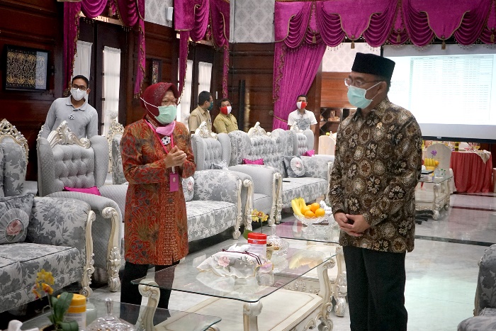 Surabaya, NEODEMOKRASI.COM – Wali Kota Surabaya Tri Rismaharini memaparkan cara memutus mata rantai penyebaran Covid-19 di Kota Surabaya. Hal ini diungkapkan Risma di depan Menteri Koordinator Bidang Pembangunan Manusia dan Kebudayaan (Menko PMK) Muhajir Effendy di rumah dinas wali kota, Selasa (16/6).