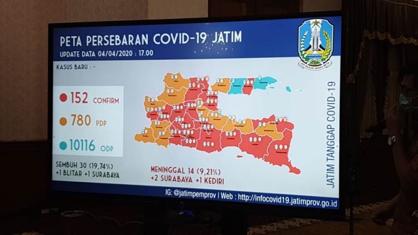 Sebaran pasien Covid-19 di Jawa Timur.