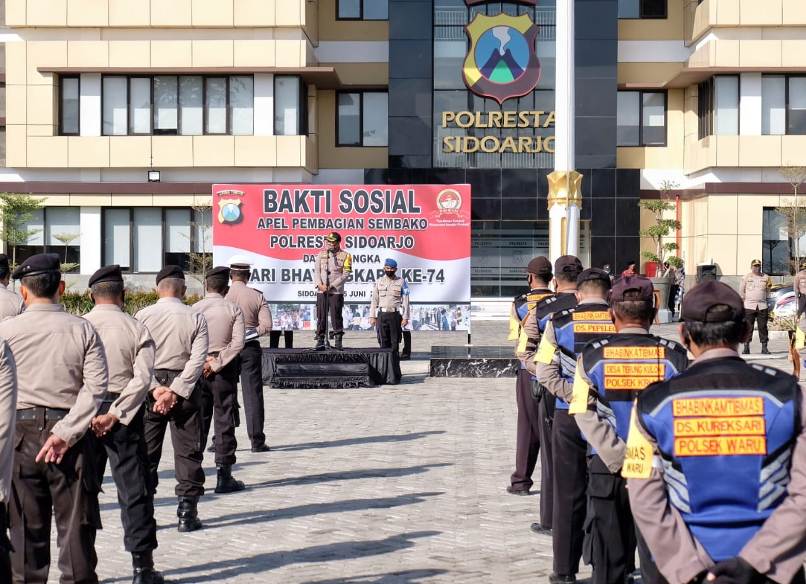 Apel pendistribusian sembako secara simbolis dilakukan kapolresta Sidoarjo diberikan kepada Bhabinkamtibmas polsek jajaran. Mereka diberikan bantuan sembako 31paket. Masing-masing 5 kg beras untuk dibagikan kepada masyarakat Sidoarjo di beberapa titik di wilayahnya masing-masing.