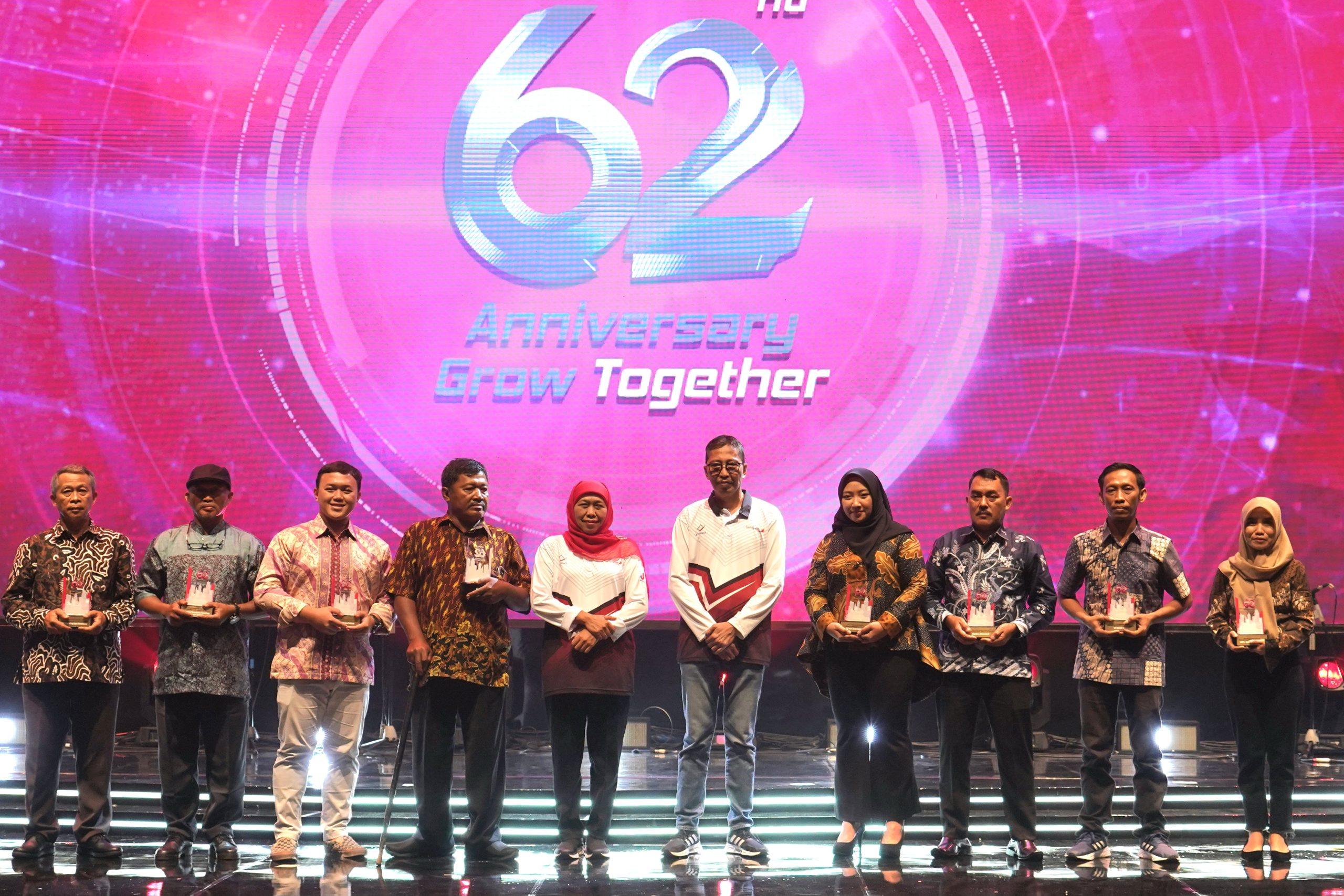 Direktur Utama Bank Jatim Busrul Iman menjelaskan, di ulang tahun yang ke-62 ini Bank Jatim mengangkat tema Grow Together. Harapannya, kinerja  Bank Jatim dapat terus tumbuh dan bertransformasi menuju digital bank dengan SDM yang berdaya saing tinggi. Selain itu, di usia ke 62 tahun ini pihaknya mengajak para stake holder dan share holder untuk bersama-sama memberikan kontribusi terhadap pertumbuhan ekonomi di Jawa Timur dan Indonesia. “Kami mengajak seluruh elemen masyarakat untuk bersinergi, berkolaborasi serta tumbuh bersama dalam mewujudkan transformasi Digital Banking Bank Jatim menuju BPD nomor 1 di Indonesia,” tegasnya.