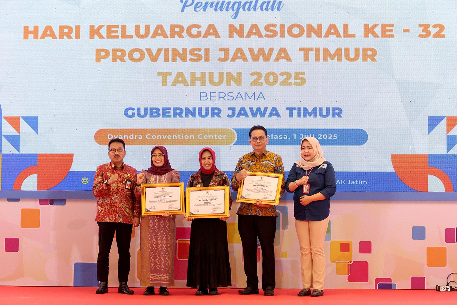 Surabaya, NEODEMOKRASI.COM – Kota Surabaya kembali menorehkan prestasi gemilang dengan meraih dua penghargaan sekaligus dalam Peringatan Hari Keluarga Nasional (Harganas) ke-32 Provinsi Jawa Timur Tahun 2025. Penghargaan tersebut diberikan oleh  perwakilan Gubernur Jawa Timur kepada Pemkot Surabaya, di Dyandra Convention Center, Selasa (1/7).