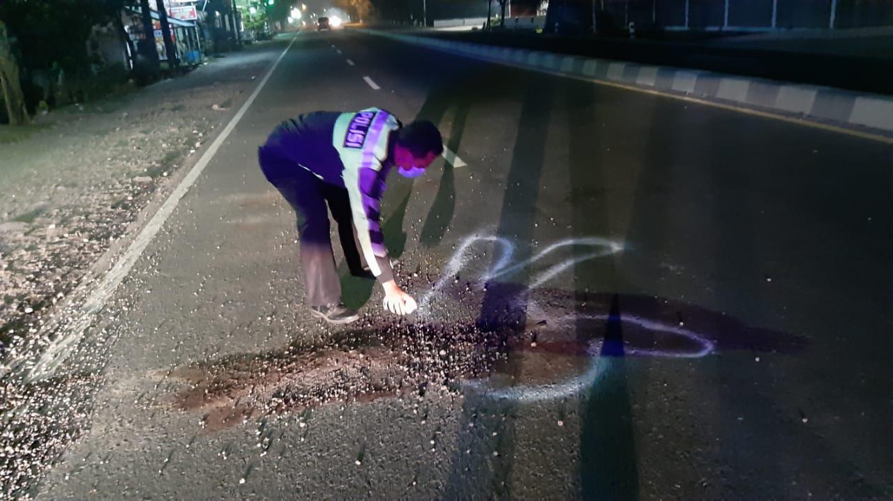 Polisi melakukan olah TKP tabrakan yang menewaskan satu orang.