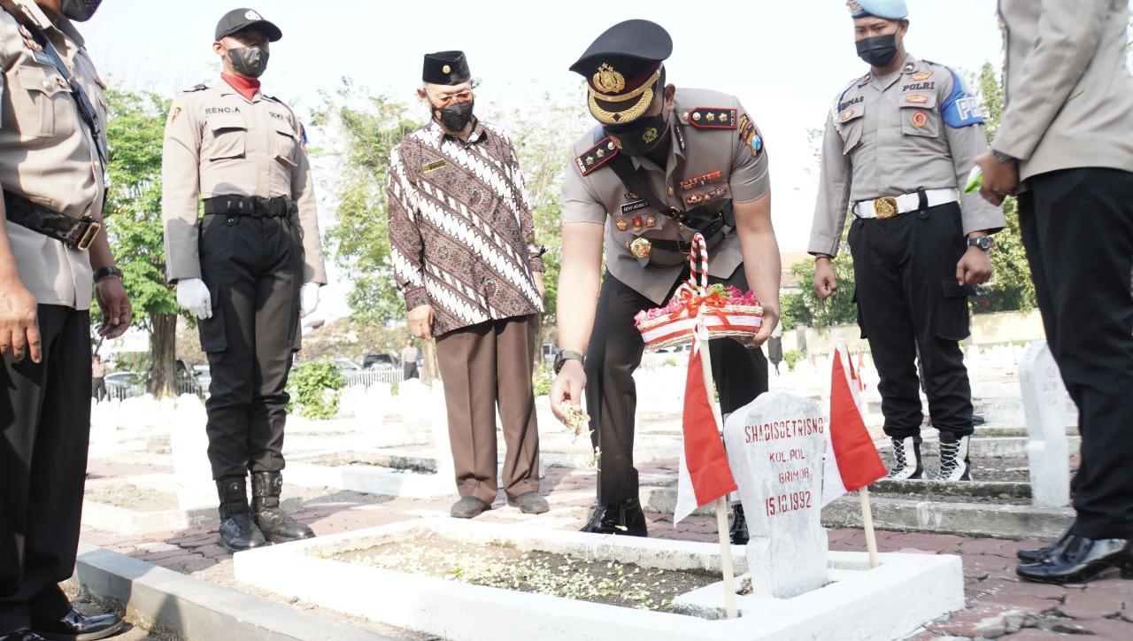 Wakapolresta Sidoarjo memimpin upacara penghormatan kepada arwah para pahlawan dan dilanjutkan dengan tabur bunga. Ini sebagai tanda penghormatan pada jasa para pahlawan yang telah gugur berjuang demi bangsa Indonesia.