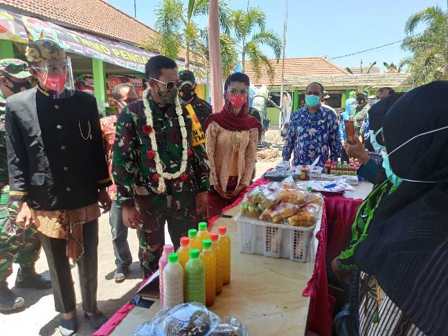 Sebelum meninggalkan lokasi, Mayjen TNI Suko Pranoto menyempatkan meninjau hasil kerajinan dan kuliner karya ibu-ibu PKK Desa Kedungkembar. Dia terlihat senang dan berbincang-bincang dengan ibu-ibu pengurus. (dan)